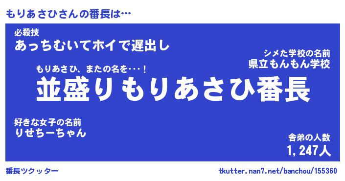 | 肩書あだ名 | 『もりあさひ店長』『もりあさひ国家主席』 |