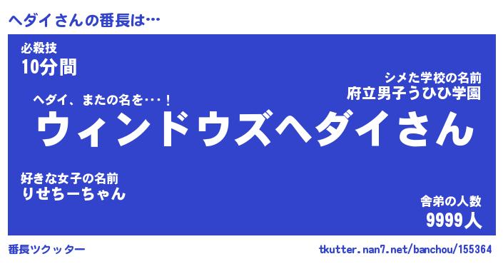 | ヘコむあだ名 | 『ヘダにゅー』『牛乳』『ヘダお』 |