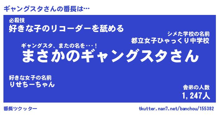| ヒーロー風カッコイイあだ名 | 『スーパーギャングスタ』『銀牙騎士ギャ』 |