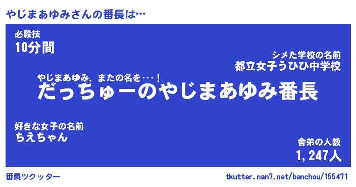 | 伝説のあだ名 | 『伝説のスナイパーやじまあゆみ』 |