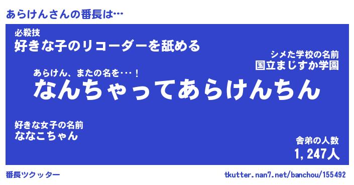| 肩書あだ名 | 『あらけん店長』『あらけん国家主席』 |