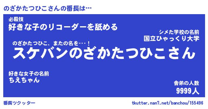| 男性向けラノベタイトル風あだ名 | 『ノザカタツヒコアートオンライン』 |