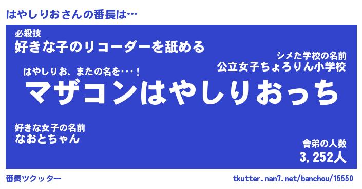 | 伝説のあだ名 | 『封印されしスナイパーはやしりお』 |