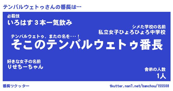 | ヒーロー風カッコイイあだ名 | 『スーパーテンバルウェトゥ』 |