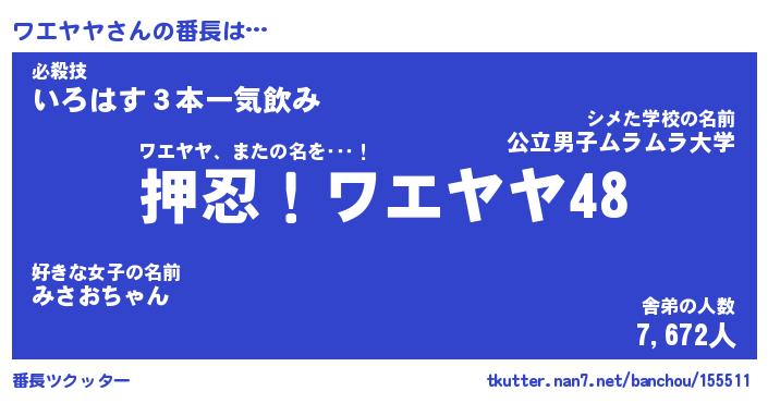 | ヒーロー風カッコイイあだ名 | 『スーパーワエヤヤ』『銀牙騎士ワエ』 |