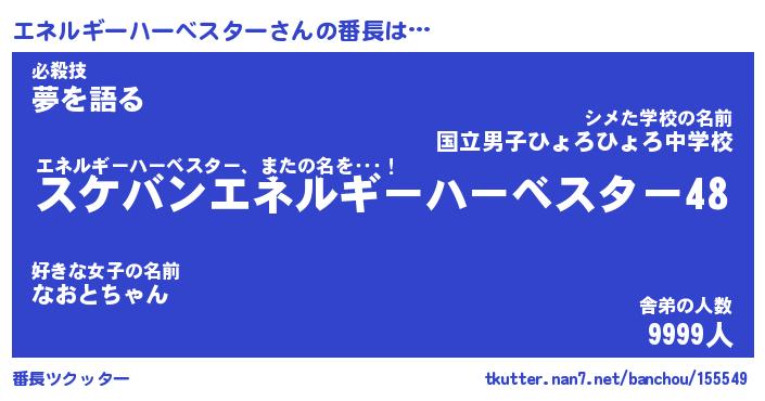 | ヒーロー風カッコイイあだ名 | 『スーパーエネルギーハーベスター』 |