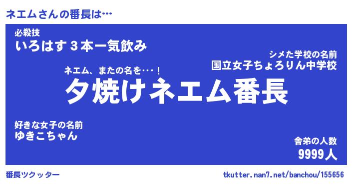 | 意味不明あだ名 | 『ペロリンネエム』『ネエムフォーエバー』 |