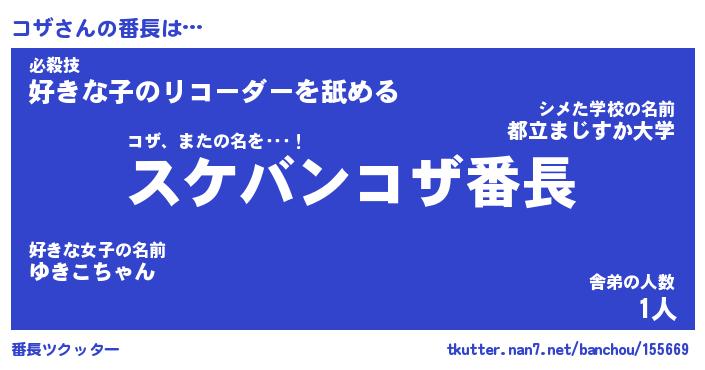 | 意味不明あだ名 | 『ペロリンコザ』『コザフォーエバー』 |