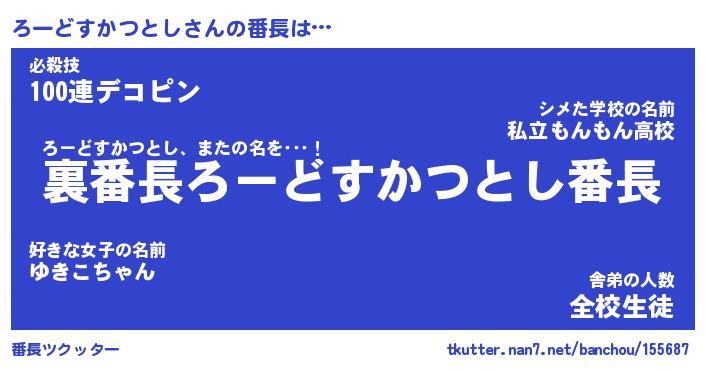 | ヒーロー風カッコイイあだ名 | 『スーパーロードスカツトシ』 |