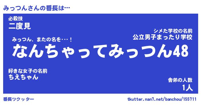 | 肩書あだ名 | 『みっつん店長』『みっつん総理大臣』 |