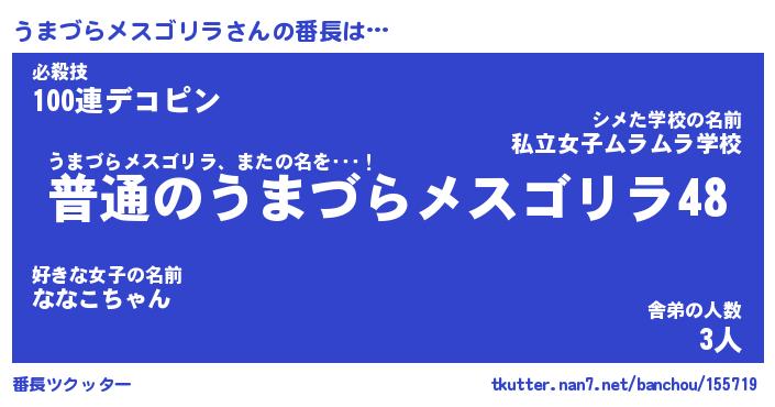 | ヒーロー風カッコイイあだ名 | 『スーパーウマヅラメスゴリラ』 |