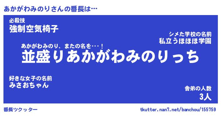 | 男性向けラノベタイトル風あだ名 | 『あかがわみのりの憂鬱』 |