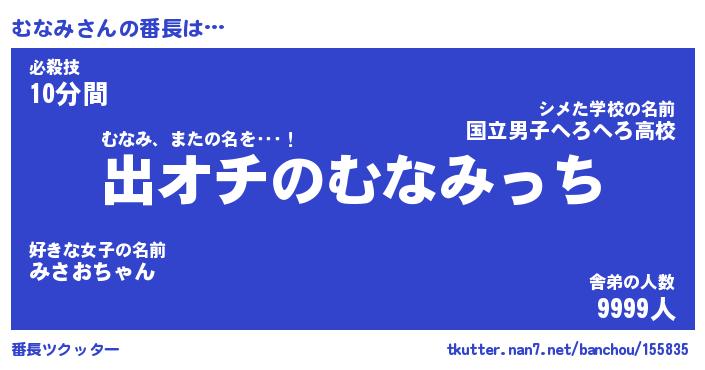 | ヒーロー風カッコイイあだ名 | 『スーパームナミ』『ウルトラむなみマン』 |