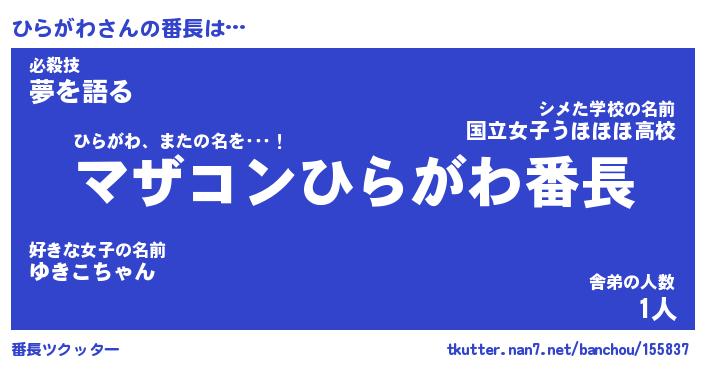| 肩書あだ名 | 『ひらがわ店長』『ひらがわ国家主席』 |