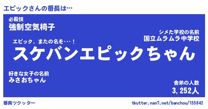 | 意味不明あだ名 | 『ペロリンエピック』『永久保存エピック』 |