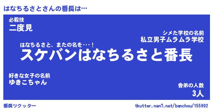 | 伝説のあだ名 | 『不死鳥のスナイパーはなちるさと』 |