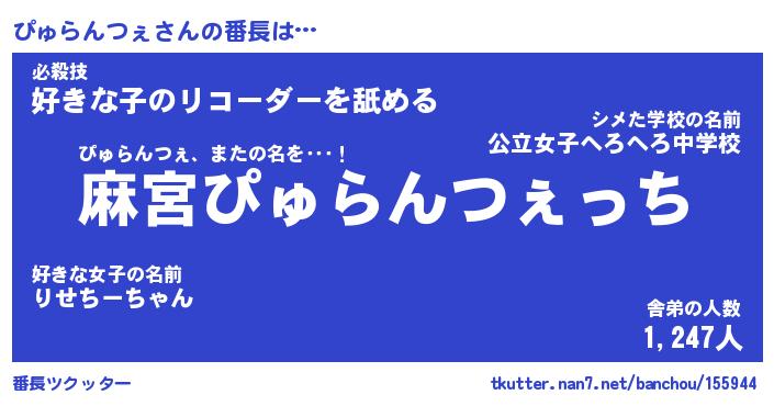 | ヘコむあだ名 | 『ぴゅもー』『レバニラ』『ぴゅお』 |