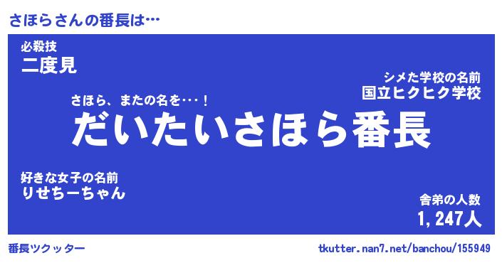 | ヒーロー風カッコイイあだ名 | 『スーパーサホラ』『ウルトラさほらマン』 |