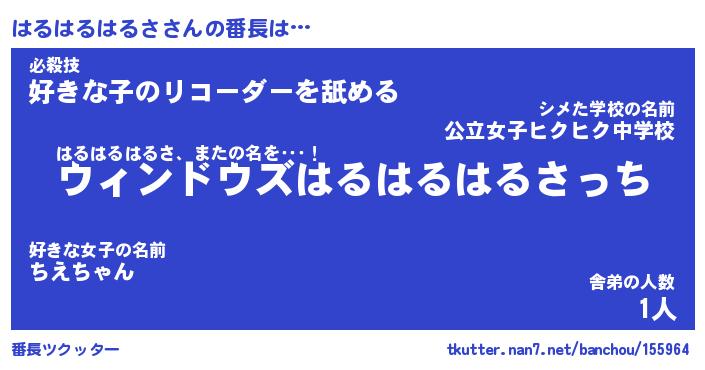| 2回繰り返すあだ名 | 『はるはる』『ははるる』『ぐだぐだ』 |
