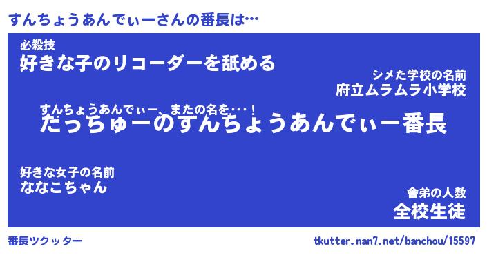 | 伝説のあだ名 | 『伝説のスナイパーすんちょうあんでぃー』 |