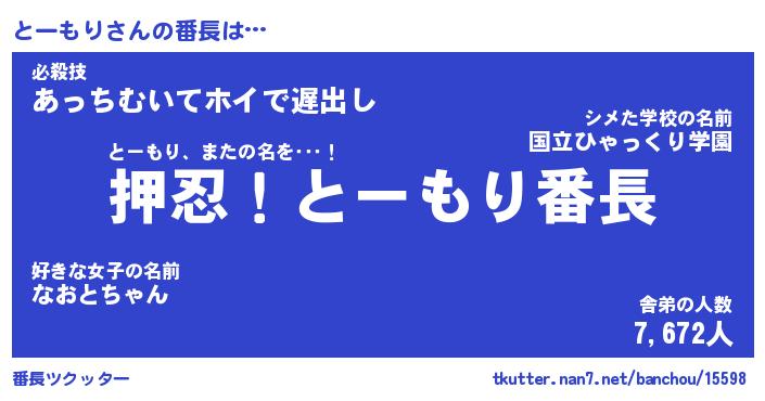 | ヒーロー風カッコイイあだ名 | 『スーパートーモリ』『炎刃騎士トー』 |