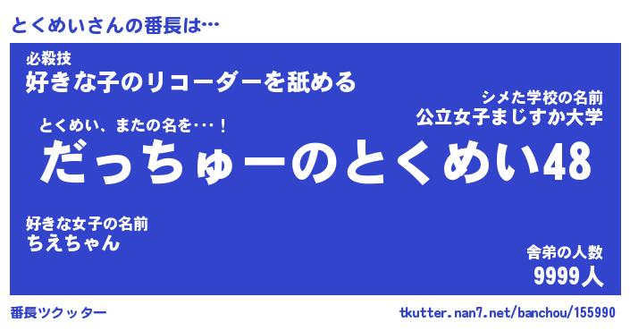 | 肩書あだ名 | 『とくめい社長』『とくめい大統領』 |