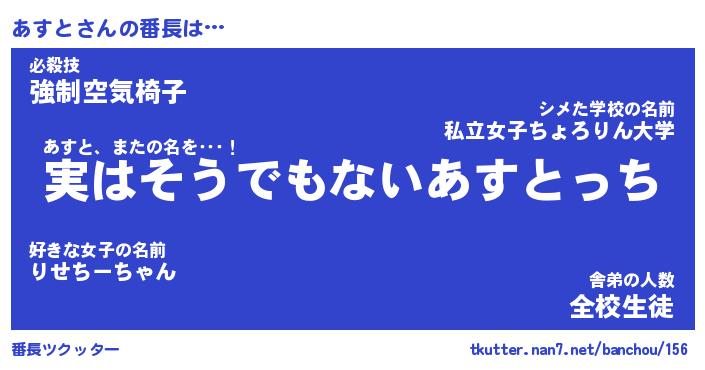 | 伝説のあだ名 | 『封印されしスナイパーあすと』 |