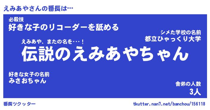 | ヘコむあだ名 | 『えみにゅー』『酢こんぶ』 |