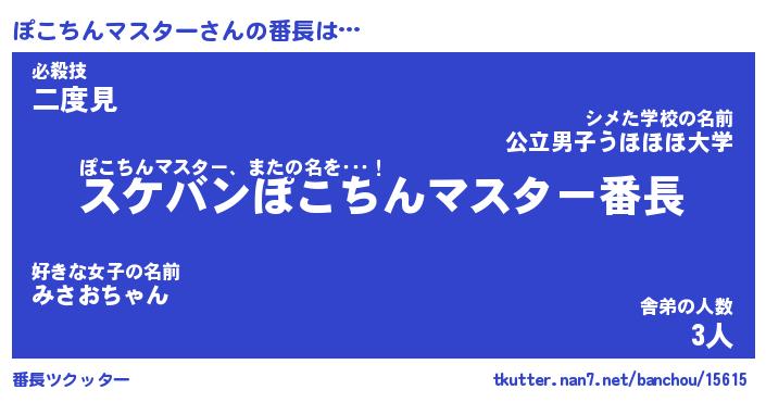 | ヒーロー風カッコイイあだ名 | 『スーパーポコチンマスター』 |