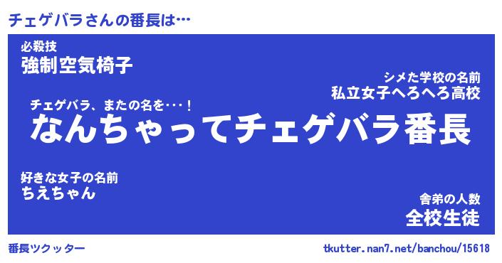 | ファンタジー風あだ名 | 『チェフェル』『エターナルチェゲバラー』 |