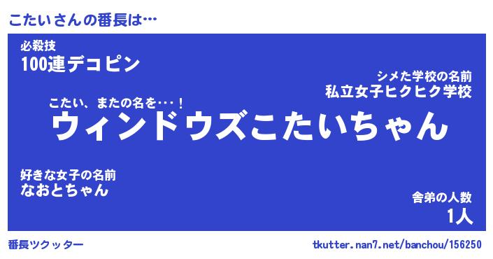 | ヒーロー風カッコイイあだ名 | 『スーパーコタイ』『ウルトラこたいマン』 |
