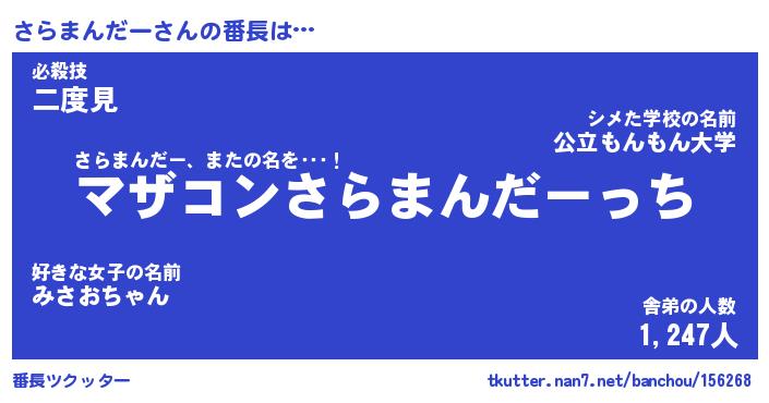| 肩書あだ名 | 『さらまんだー御曹司』 |