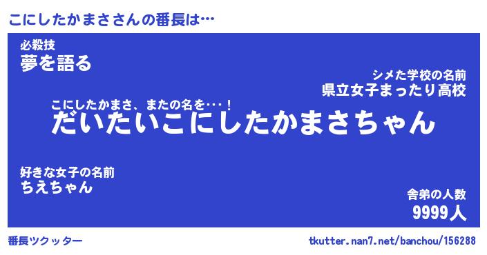 | 男性向けラノベタイトル風あだ名 | 『こにしたかまさの憂鬱』 |