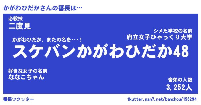 | 恥ずかしいあだ名 | 『プリティーかがわひだか』『かがっちょ』 |
