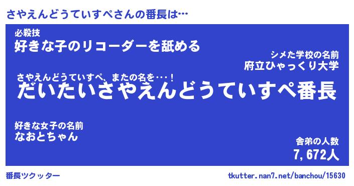 | 伝説のあだ名 | 『不死鳥のスナイパーさやえんどうていすぺ』 |