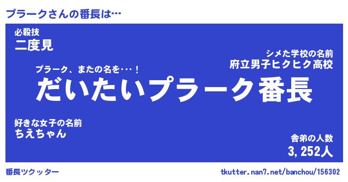 | 意味不明あだ名 | 『ペロリンプラーク』『永久保存プラーク』 |