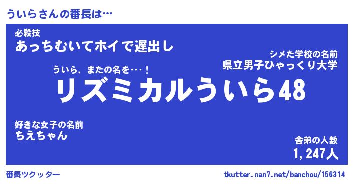| 肩書あだ名 | 『ういら店長』『ういら国家主席』 |