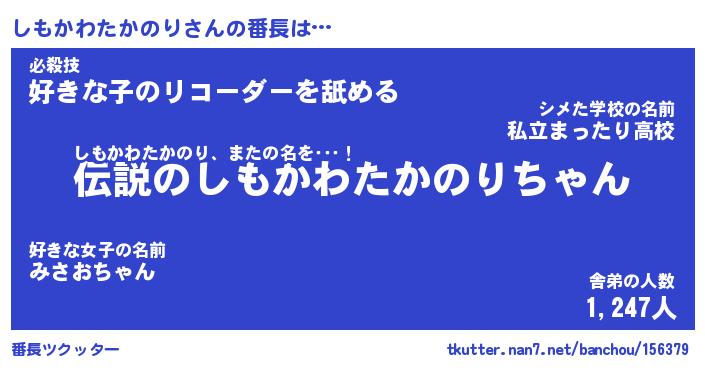 | 肩書あだ名 | 『しもかわたかのり御曹司』 |