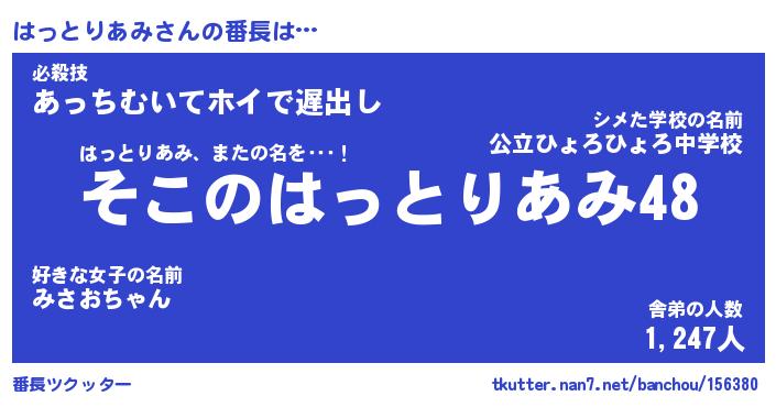 | 胡散臭い通販商品みたいなあだ名 | 『モテモテ間違いなし霊験あらたかなお札…その名も「はっとりあみ」』 |