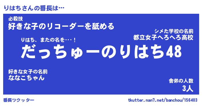 | 意味不明あだ名 | 『ペロリンりはち』『りはちフォーエバー』 |