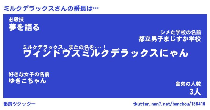 | 男性向けラノベタイトル風あだ名 | 『ミルクデラックスの憂鬱』 |