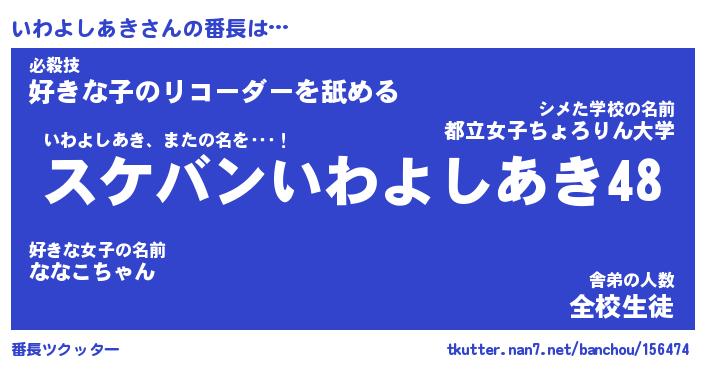| 恥ずかしいあだ名 | 『プリティーいわよしあき』『いわっちょ』 |