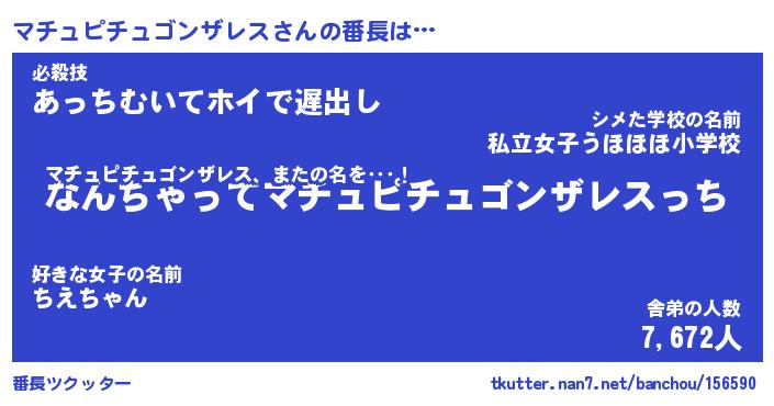 | 男性向けラノベタイトル風あだ名 | 『マチュピチュゴンザレスの憂鬱』 |
