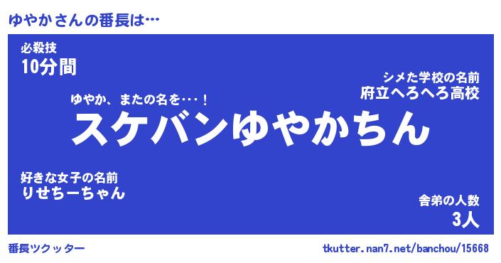 | ヘコむあだ名 | 『ゆやにゅー』『つくし』『ゆや太郎』 |