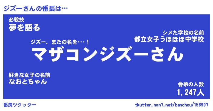 | ポケモン風あだ名 | 『ジズチュウ』『ジズーダネ』 |