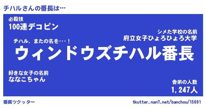 | ファンタジー風あだ名 | 『チハフェル』『エターナルチハルー』 |