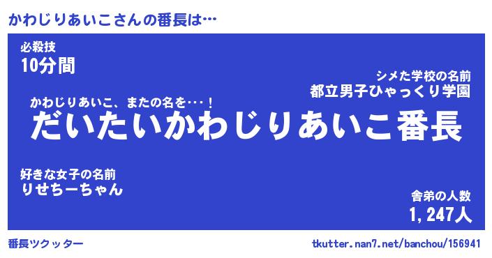| ヒーロー風カッコイイあだ名 | 『スーパーカワジリアイコ』 |