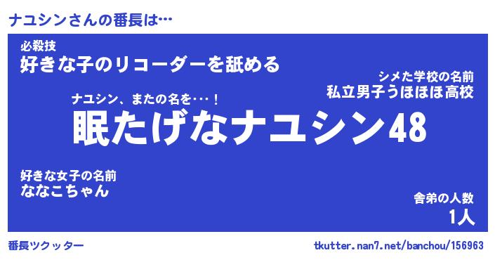 | 意味不明あだ名 | 『ペロリンナユシン』『永久保存ナユシン』 |