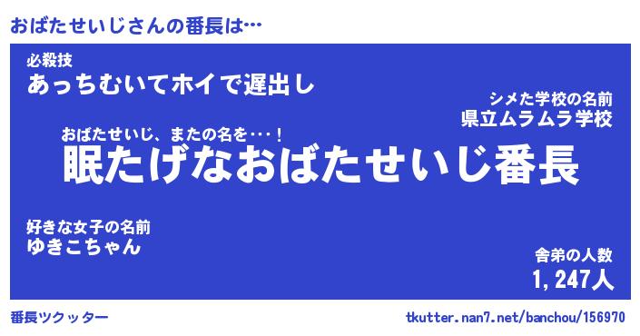 | 伝説のあだ名 | 『封印されしスナイパーおばたせいじ』 |