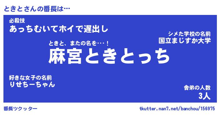 | 意味不明あだ名 | 『ペロリンときと』『ときとフォーエバー』 |